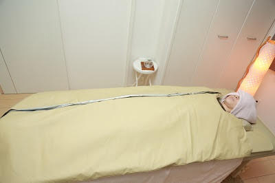 施術後は脂肪燃焼クリームを塗布し、さらに体を温めていきます。